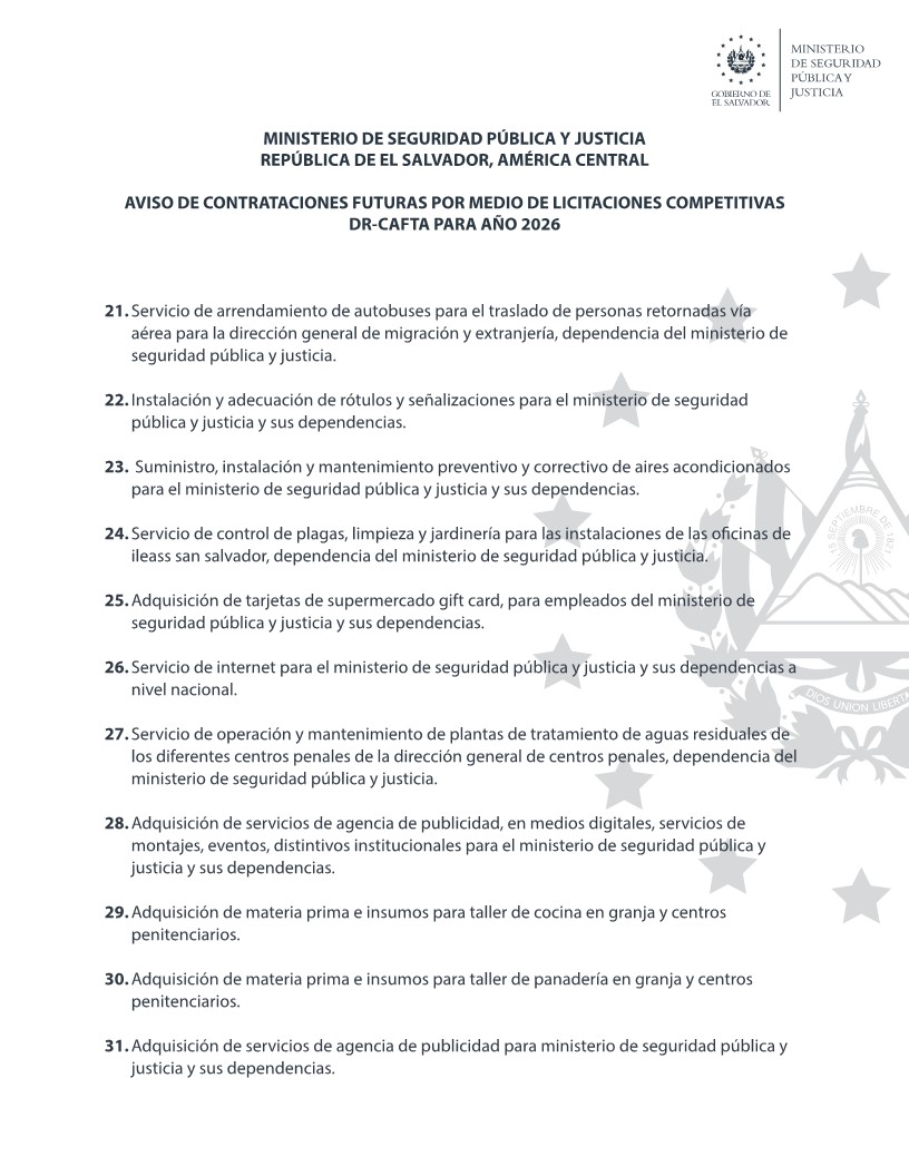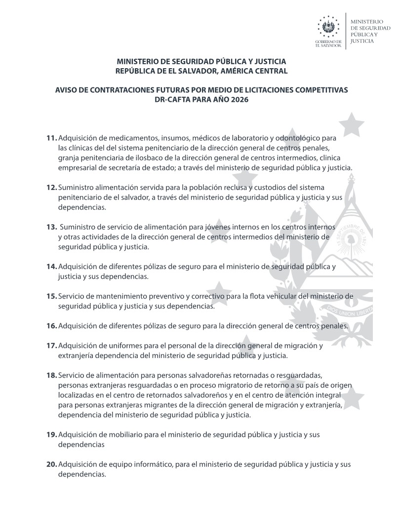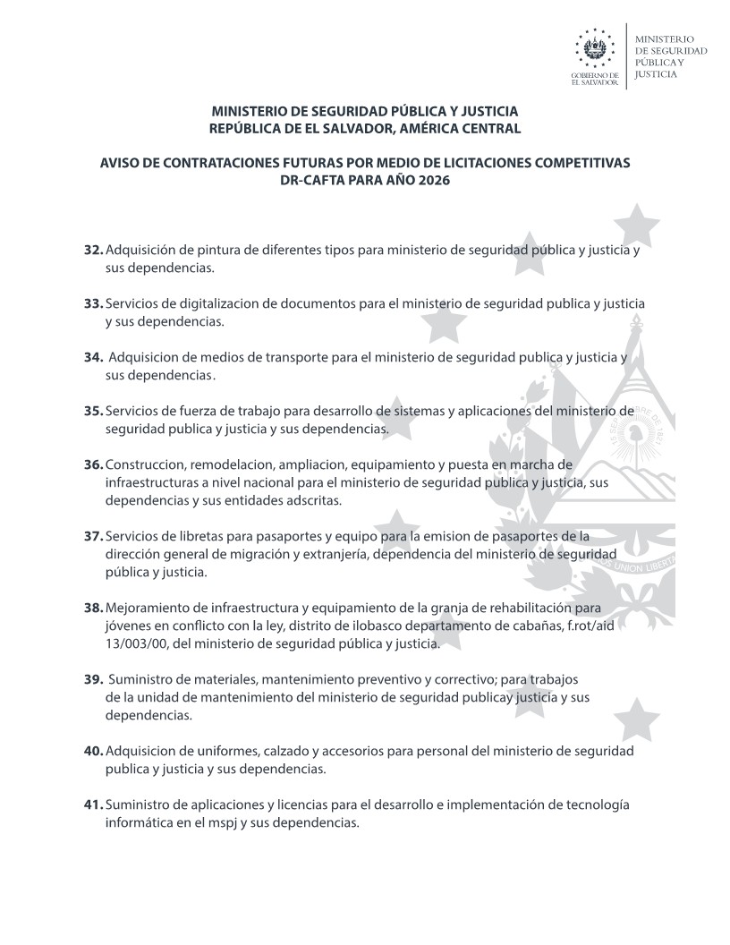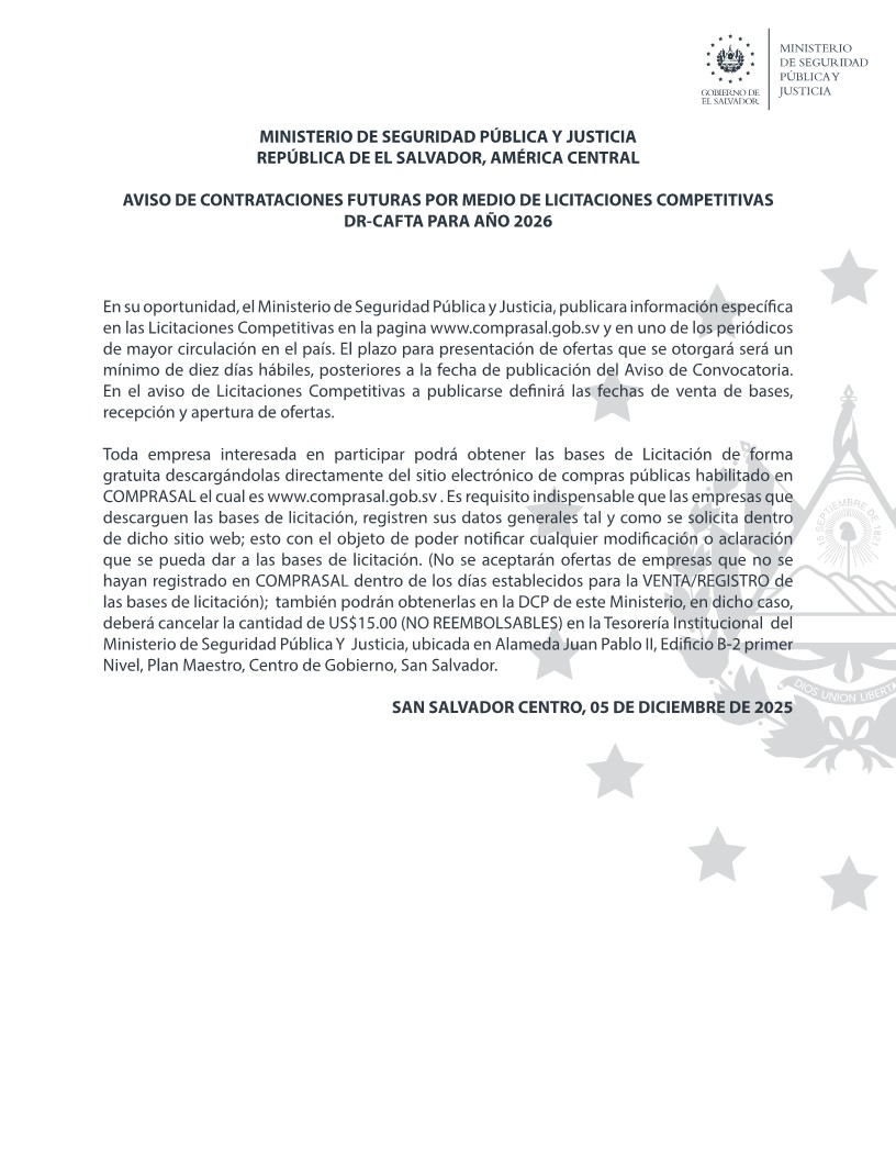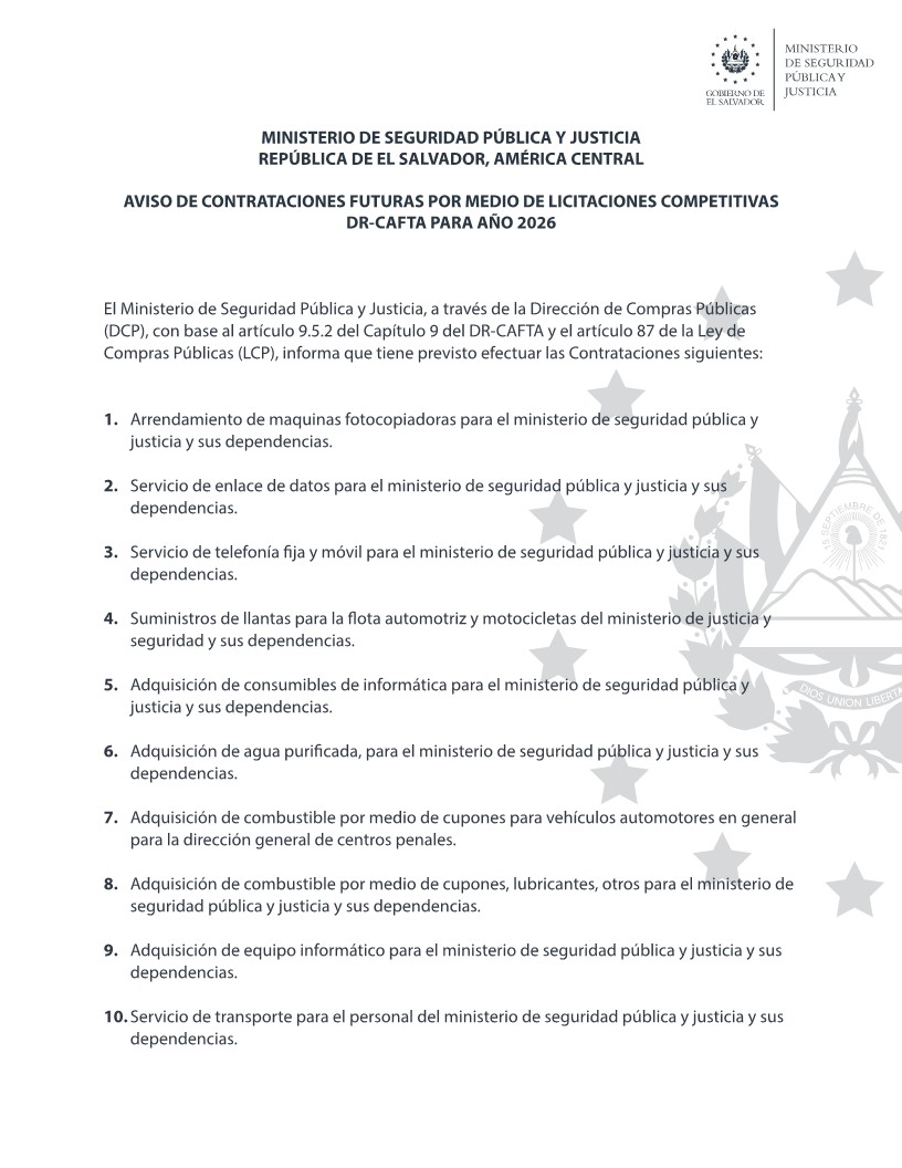 AVISO DE CONTRATACIONES FUTURAS POR MEDIO DE LICITACIONES COMPETITIVAS DR-CAFTA PARA AÑO 2026